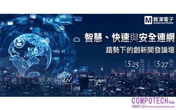 2021年5月21日--提供種類最齊全的半導體與電子元件、專注於新產品導入的授權代理商Mouser Electronics ( 貿澤電子 ),宣佈將於5月25及27日舉辦「智慧、快速與安全連網趨勢下的創新開發論壇」。 貿澤電子攜手ADI、Renesas、Silicon Labs、工研院和中華亞太智慧物聯發展協會,分別在週二與週四下午的2點到4點與您線上相約,一起從不同的面向來探討物聯網軟硬體開發設計與解決方案。
