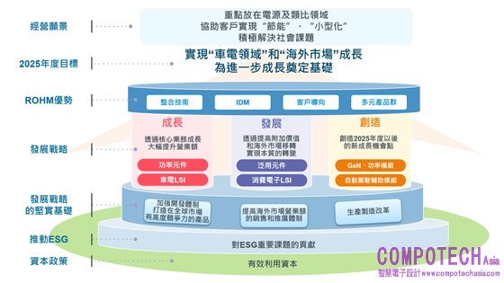 2021年5月27日--半導體製造商ROHM(總公司:日本京都市)制定了中期經營計畫「MOVING FORWARD to 2025」,將根據企業理念和經營願景,並透過業務活動加速社會貢獻的步伐。