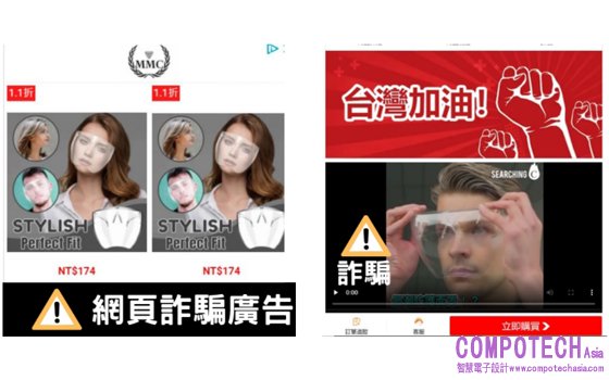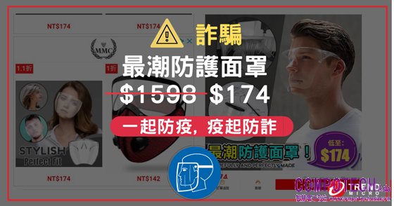 趨勢科技指出,自台灣疫情警戒提升以來,詐騙集團大量在入口網站、臉書及LINE等平台上刊登廣告,聲稱可購買防護面罩、血氧機與防飛沫外套等熱門防疫商品,打著「台灣加油」或是「低價促銷」等字眼,並搭配假冒官方網站的商品圖片,企圖誘騙民眾上鉤,進入以假亂真的一頁式詐騙網站,一旦消費者受騙下單,往往面臨遲遲等不到商品出貨,或是收到假貨等情況,嚴重甚至面臨重要個資遭竊的危險!