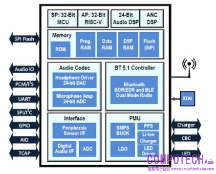 圖示3-大聯大品佳推出基於Audiowise PAU1818的TWS藍牙耳機方案的方塊圖