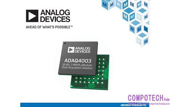 2021年6月10日--提供種類最齊全的半導體與電子元件、專注於新產品導入的授權代理商貿澤電子 (Mouser Electronics) 即日起供貨Analog Devices的ADAQ4003 µModule®資料擷取解決方案 (DAQ)。ADAQ4003採用系統封裝 (SIP) 技術,將訊號鏈設計在元件選擇、最佳化和配置上所面臨的挑戰從設計人員轉移到裝置上,藉此縮短精密測量系統的開發週期。