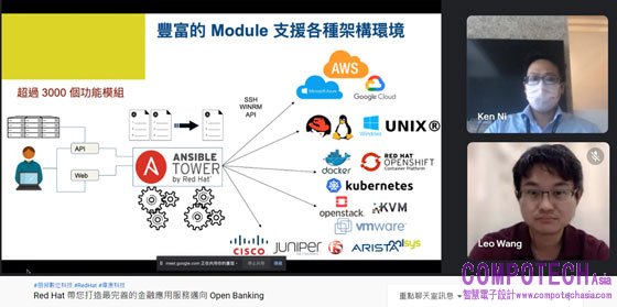 【圖說: 本次講座中,Red Hat紅帽公司、Palsys朋昶數位科技與WebComm偉康科技不僅實際演示如何透過Red Hat Ansible協助企業維運作業,並演示如何從雲原生應用及雲端身分識別兩大面向建置符合Bank 4.0的業務中台】