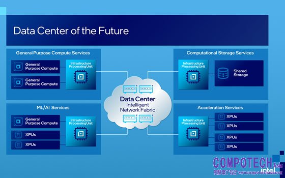 英特爾領先的IPU產品組合將為通用基礎設施提供基礎,讓雲端與電信客戶能夠在未來的異質資料中心當中,汲取它們的通用運算、XPU與加速器的所有優勢。