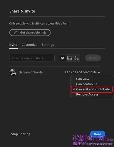 圖二:最新版本的 Lightroom 讓用戶可邀請其他人共同編輯相簿中的照片