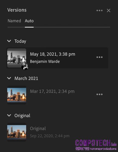 圖三:所有編輯後的照片都將自動儲存為新版本並標註編輯者名稱,便於用戶於不同編輯者的照片之間切換或恢復之前的編輯內容