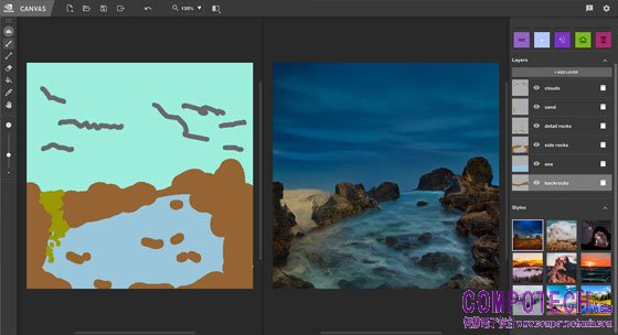 NVIDIA (輝達) 今天推出 NVIDIA Canvas 應用程式測試版,創作者使用素材而非顏色進行作畫,透過 RTX 加速的人工智慧 (AI) 將筆觸變成逼真的影像。藝術家在這個應用程式裡還能套用風格濾鏡,將創作中的影像變成特定畫家的風格。RTX 用戶可以下載和試用 Canvas 應用程式測試版,同時歡迎在 NVIDIA 論壇上與我們分享心得。