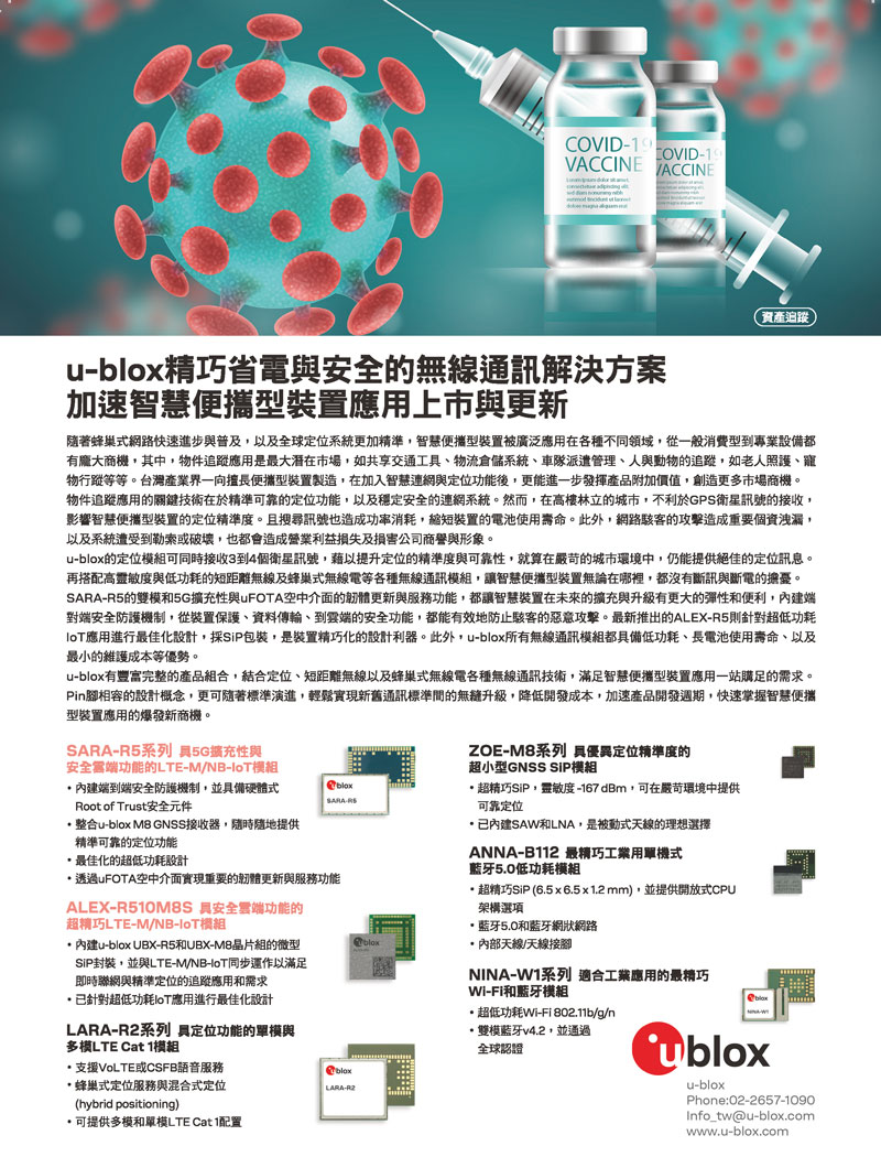 u-blox精巧省電與安全的無綫通訊解決方案 加速智慧便携型裝置應用上市與更新