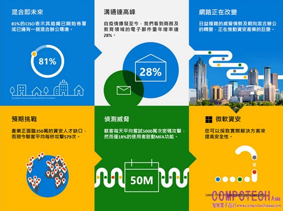 全球疫情嚴峻,資安威脅也隨之升溫,根據微軟調查,駭客平均每天發動5,000萬次密碼攻擊,相當於每秒579次,微軟去年更截獲了300億封電子郵件威脅,並指出2022年網絡犯罪對全球經濟的影響將達到240兆台幣(8兆美元成本),顯示出疫情期間全球防駭更不可輕忽。