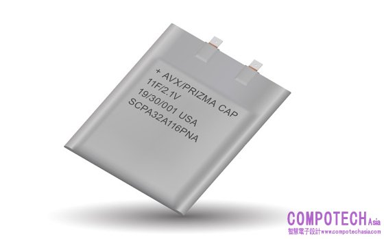 AVX PrizmaCap具有建基於丙烯碳酸酯(PC)的電解質技術,結合超薄型設計,解決了傳統超級電容器無法應對耐高溫和空間受限設計的問題。對於高於65°C的操作溫度,建議將額定電壓從2.1V降至1.1V,以確保較長的使用壽命。