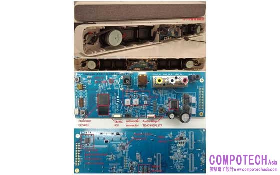 圖示3-大聯大詮鼎基於高通QCS400 SoC的2.1聲道智能音響參考設計方案開發板及實物圖