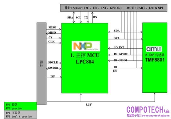 在LPC804與TMF8801兩款產品的性能加持下,此方案具備量程大、距離遠、精度高等優勢,能夠在掃地機器人防碰撞、智能調光投影儀智能調亮度、智能燈自動調光、智能水杯測水量等應用領域大放異彩。