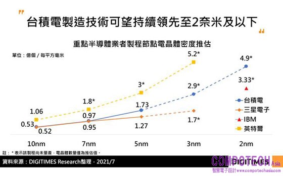 2021年7月26日-- 即使業界對摩爾定律(Moore’s Law)發展看法分歧,台積電仍信心滿滿,而先進製程發展順利是台積電得以延續摩爾定律的重要體現。台積電之所以可順利推展先進製程並保持業界領先的競爭優勢,DIGITIMES Research分析師陳澤嘉認為,其在EUV技術、GAA電晶體架構與半導體材料布局是關鍵。