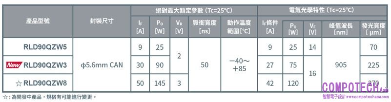 <LiDAR用高輸出功率雷射二極體產品系列>