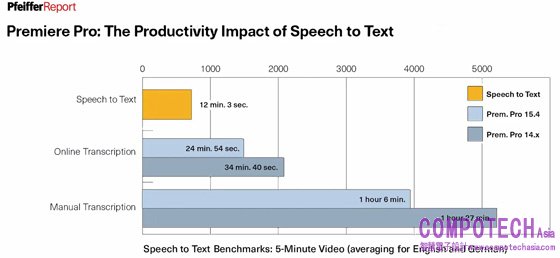 圖二:Pfeiffer報告顯示語音轉文字功能可大幅降低字幕工作流程所需的時間。