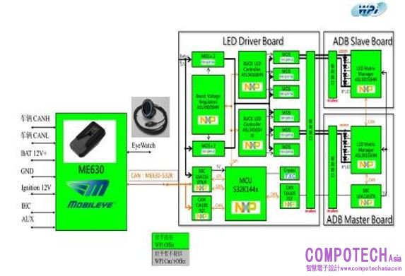 圖示4-大聯大世平基於Intel Mobileye和NXP產品的汽車自適應大燈方案的方塊圖