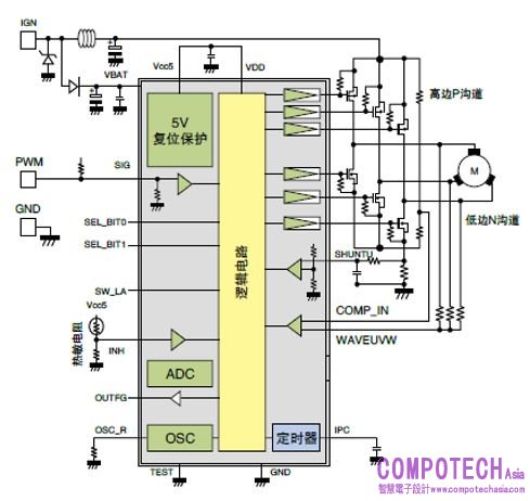 內置1ch比較器,用於檢測Back-EMF零交叉點,以檢測電動機位置