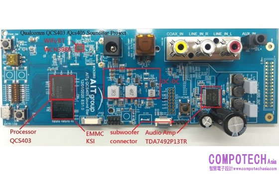 圖示1-大聯大詮鼎基於Qualcomm產品的2.1CH音源擴大機解決方案的展示板圖