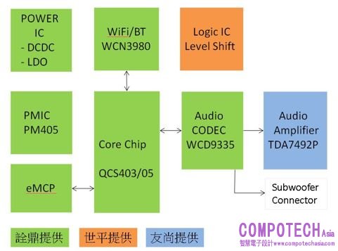 圖示3-大聯大詮鼎基於Qualcomm產品的2.1CH音源擴大機解決方案的場景應用圖