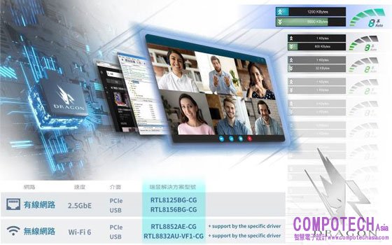 消費者選購設備時,可從各廠牌主機板、筆電、外插網路介面卡所釋出的網路規格來確認產品型號與所支援的項目是否搭配瑞昱Dragon頻寬控管軟體與驅動程式,來提升線上學習、直播、視訊會議及網路遊戲的順暢度!而瑞昱2.5GbE乙太網路控制器 (RTL8125BG-CG)、Wi-Fi 6 (RTL8852AE-CG) 更榮獲今年2021台北國際電腦展創新設計獎的肯定。