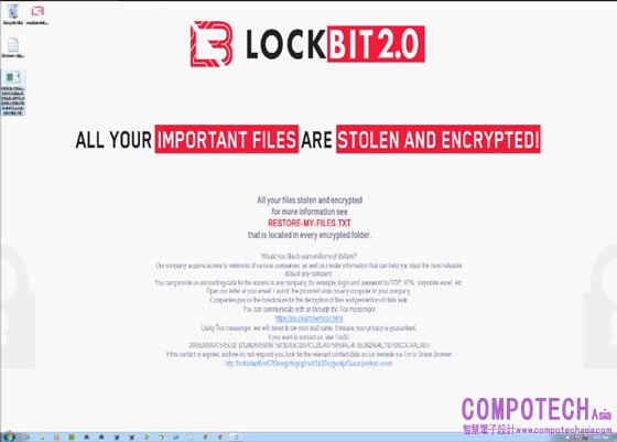 圖說三:LockBit 2.0勒索軟體會修改受害者的電腦桌布,提醒受害者意識到他們的被駭。