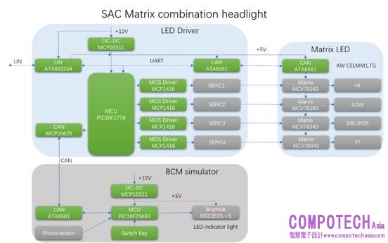 圖示2-大聯大品佳攜手多家知名企業推出CAN/LIN通訊矩陣式大燈解決方案的方塊圖