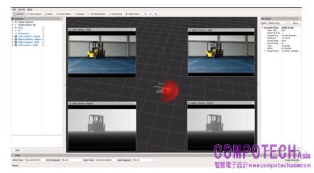 圖一_ROS 支援立體攝影機,在 ROS Rviz 工具中提供了左右攝影機畫面。在 Rviz 中皆有顯示 RGB 和深度影像。