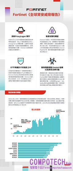 2021年09月23日--全方位整合與自動化網路資安領導廠商 Fortinet®(NASDAQ:FTNT)今(23)日公布《2021 上半年全球資安威脅報告》(FortiGuard Labs Global Threat Landscape Report),報告顯示,2021年上半年在全球範圍中針對個人、企業組織與關鍵基礎設施的攻擊次數以及複雜程度皆顯著提升,正在進行混合辦公與學習模式的使用者仍是攻擊發動的重點目標。值得注意的是,勒索軟體攻擊事件大幅增加,與2020年同期相比,所偵測到的勒索軟體攻擊數量成長超過10倍,光是在6月,每周平均攻擊次數就高達近15萬次。