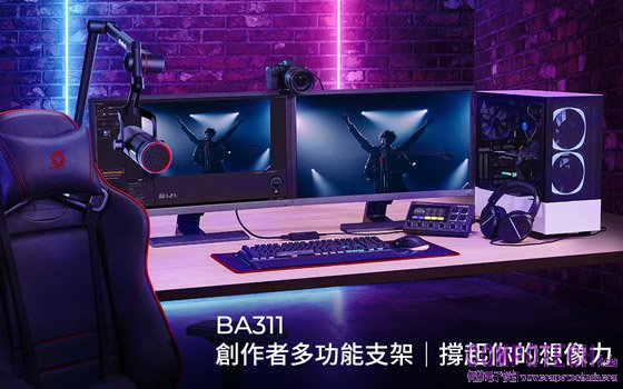 BA311 創作者多功能支架給予使用者嶄新的支架概念,不管是用在實況直播的麥克風、攝影機架設,還是當作手機、平板支架,進行日常的多媒體娛樂,甚至當作影片拍攝時的運鏡輔助支架,針對直播、Podcast、多媒體創作和專業人士的需求設計打造的全方位幫手。