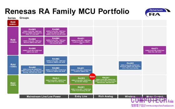 2021年10月13日--先進半導體解決方案頂尖供應商瑞薩電子(TSE:6723)今天為32位元RA系列微控制器(MCU)增加了新的成員。RA2E2元件採用最新的Arm® Cortex®-M23核心,提供極低功耗、針對物聯網端點應用的周邊,以及節省空間的封裝選項,包括一個尺寸僅為1.87 x 1.84 mm的微型16接腳WLCSP(晶圓級晶片封裝)。新的48MHz RA2E2可加快設計週期,並能輕鬆升級到其他RA系列設備。