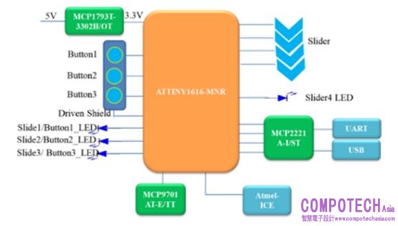 圖示3-大聯大品佳基於Microchip產品的觸摸感應設計方案的方塊圖