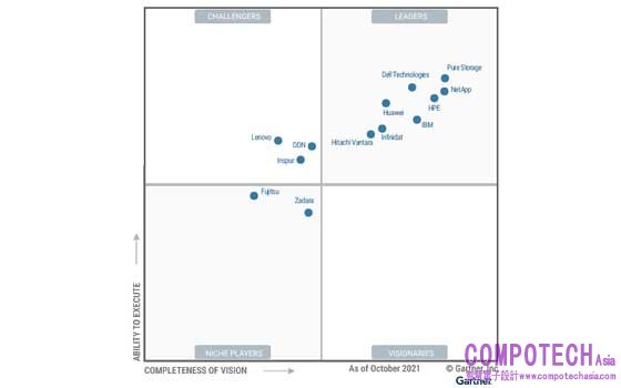 Gartner主儲存魔力象限(Magic Quadrant™ for Primary Storage),作者:Jeff Vogel、Roger W. Cox、Joseph Unsworth與Santhosh Rao,日期:2021年10月11日。