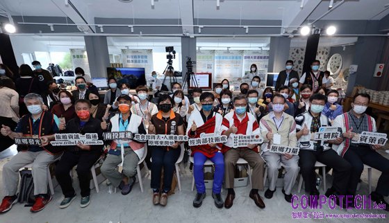 圖說:今(23)日由立法院孔文吉委員(右4)、伍麗華委員(左4)、經濟部技術處邱求慧處長(右5)、交通部科技顧問室王穆衡參事兼科顧室主任(右3)、工研院彭裕民副院長(右2)、資策會系統所蒙以亨代所長(右1)等貴賓一同啟動科專成果原鄉場域應用計畫啟動儀式。