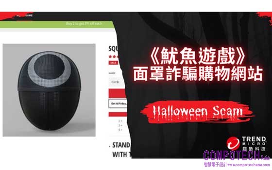 2021年10月26日--每年可以放肆搞怪的萬聖節即將到來!不僅消費者充滿期待,許多網路不肖份子也正摩拳擦掌,準備假鬼假怪。隨著網路串流熱劇《魷魚遊戲》在全球爆紅,相關的周邊商品成為今年最夯的萬聖節裝扮之一,而詐騙集團更看準此一商機,搭上熱門話題迅速改變詐騙手法,希望藉此誘騙更多無辜民眾上勾。全球網路資安解決方案領導廠商趨勢科技 (東京證券交易所股票代碼:4704) 指出,近期網路上出現販賣《魷魚游戲》相關商品的一頁式詐騙網站,提醒民眾務必多加留意小心,避免被不肖份子鎖定,遭到「淘汰」!