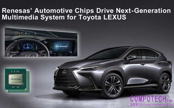 2021年10月26日--先進半導體解決方案頂尖供應商瑞薩電子(TSE:6723)今天宣布,Toyota在新一代多媒體系統中採用R-Car H3及M3系統晶片(SoC)。R-Car H3和R-Car M3是專為車內資訊娛樂(IVI)應用所設計的,透過顯示車內外的資訊以及各種影音娛樂,為駕駛提供安全又便利的駕駛體驗。Toyota新一代多媒體系統預計在2021年11月之後發布的Lexus NX上首次亮相,之後將擴展至Lexus和Toyota旗下的其他車款。