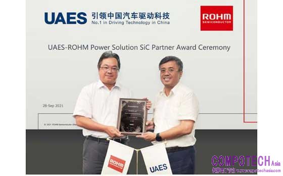 2021年10月27日--半導體製造商ROHM(總公司:日本京都市)榮獲中國車界Tier1供應商—聯合汽車電子有限公司(United Automotive Electronic Systems Co., Ltd.,以下簡稱UAES)的SiC功率解決方案優先供應商殊榮。