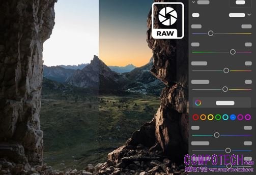 用戶現可從 iPhone 12 和 13 Pro(ProRAW)或數位相機匯入 RAW 檔案格式的照片,並利用 Adobe Camera Raw 的強大的功能調整編輯影像,其支援的功能包括光影、色彩、自動調整、重設設定等。