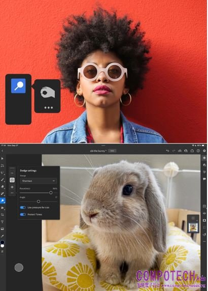 用戶現可使用直接來自Photoshop桌面版的「加亮」及「加深」工具將影像區域變亮或變暗,以調整陰影、中間色調、筆刷圓滑度和角度。