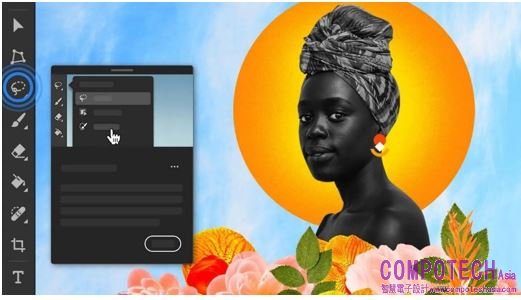 Photoshop 網頁版(Beta)中將會提供從潤飾及調整影像的工作流程開始著手的有限編輯功能,如簡單圖層、選取工具、遮色片等。