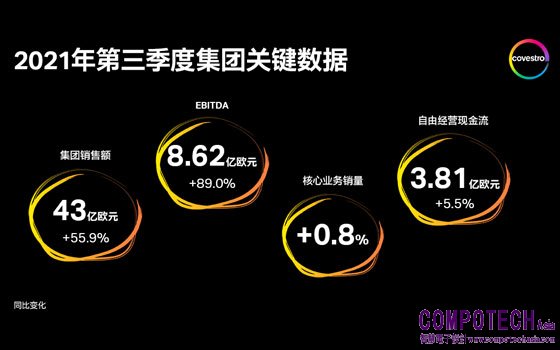 科思創財務長陶鵬飛博士(Dr. Thomas Toepfer)表示:“我們已經實現了盈利的顯著增長,並達到了第三季度EBITDA預期的上限。我們有信心這種積極的盈利趨勢仍將繼續,我們也通過上調全年業績目標指引進一步強調這一點。”