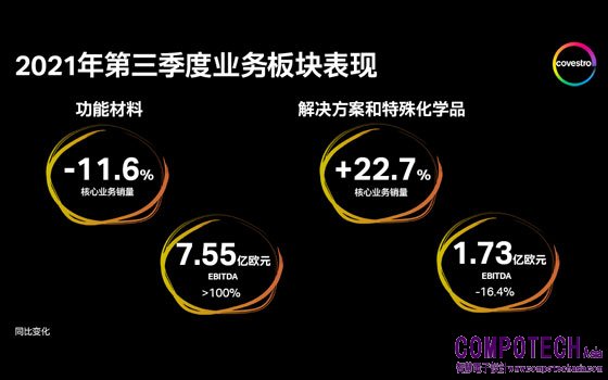 在第三季度財報中,科思創首次基於“功能材料”及“解決方案和特殊化學品”兩大板塊進行報告。