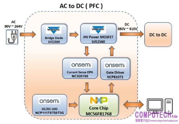 圖示3-大聯大世平基於NXP產品推出的2000W PFC數位電源方案的方塊圖