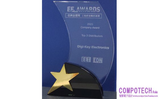 2021年11月17日--Digi-Key Electronics 提供全球最豐富的電子元件品項現貨,且可立即出貨;宣佈獲頒 EE Awards Asia 亞洲金選獎 的金選三大電子零組件通路商。