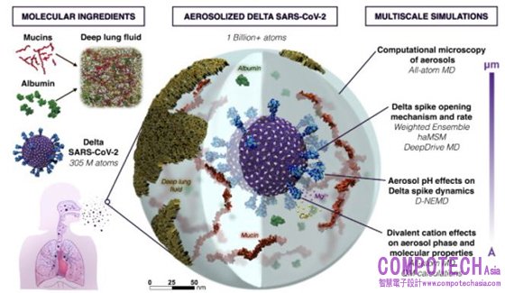 圖_由 Amaro 帶領的團隊以超過十億個原子,模擬呼吸道飛沫中的新冠病毒 Delta 變種。