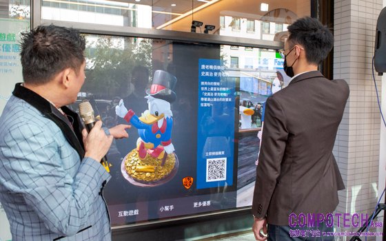 事實上,將高階互動螢幕化身「櫥窗購物」(Window shopping)是智慧零售另一項創意應用,為了要讓高價商品躍上螢幕,還能吸引消費者眼球,則需要有高精度的3D技術及高清畫面。方舟智慧720度3D高擬真成像技術讓精緻度大幅提升,再結合群創光電110吋AM MiniLED顯示器精準的色彩呈現,讓消費者能夠透過觸控螢幕觀看商品細節,包括珠寶奢侈品、話題性公仔等不易於店內陳列的商品。