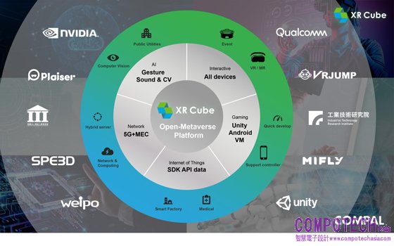 隨著延展實境相關硬體設備越來越多樣化,XR Cube建置統一的通用API與單一裝置介面,能支援包含符合OpenXR標準的多項終端設備。同時也提供微服務架構,支援可擴展的部署,讓用戶的開發及營運更加靈活。仁寶的XRCube雲端服務及軟硬體的終端應用,將整合一個全新的「元宇宙生態系」。在這個產業鏈中,囊括NVIDIA、Qualcomm、米菲多媒體、MOONSHINE、資策會、工研院、啟雲科技、瑋柏科技、VR JUMP、iKala以及TAVR等各領域策略合作夥伴。