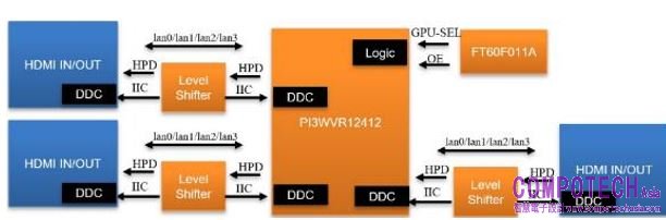 支持HDMI的DDC與HPD通道MUX/DEMUX切換;