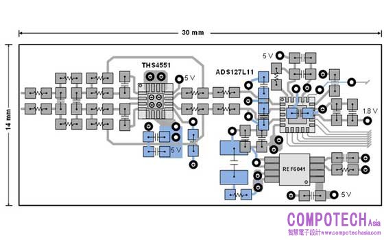 圖 1:典型類比前端印刷電路板 (PCB) 配置