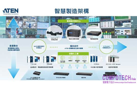 ATEN採取具有規模經濟利基的智慧製造服務模式與架構,價值核心來自本身的垂直整合能力與橫向合作能力。宏正擁有RCM軟硬體整合方案,且具備系統整合顧問服務能力,並且積極與第三方軟體夥伴合作,從MES製造執行系統的各種生產製程應用軟體整合、OCR光學辨識代操,未來也將實現各項AI-Powered 軟體服務合作計畫,建構出完善的宏正智慧製造生態系。再者,ATEN於國內外高科技製造業廠房遠端管理與RPA機器人流程自動化已累積10年以上的成功導入經驗,其方案具高度相容性特色,整合廠區MES製造執行系統,不受限於跨廠牌機台,甚至是舊型機台也能經由 ATEN方案集中管理,在產業大幅升級與轉型之際,ATEN將為製造業升級轉型扮演著不可或缺的推手之一。