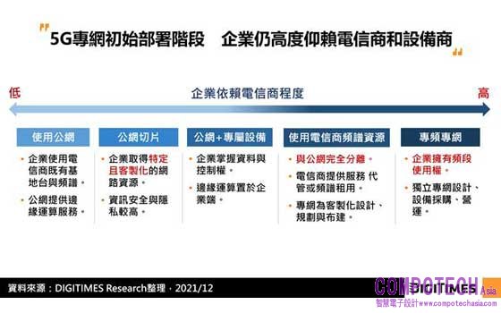 首波部署5G專網的業者多偏好與電信商和諾基亞(Nokia)、愛立信(Ericsson)合作,且多採公網搭配專屬設備模式建置專網。儘管5G開啟專頻專網商機,然僅日系業者如富士通(Fujitsu)因欲銷售專網設備和服務,而積極以日本釋出的專頻建置專網。