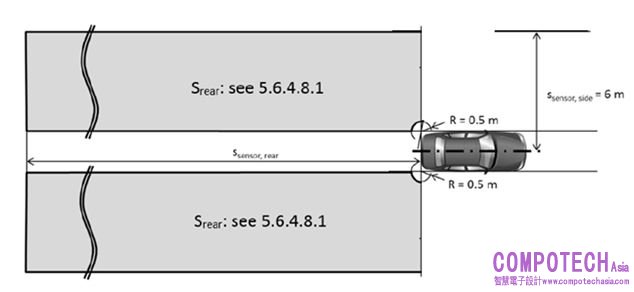 對於雷達,「最小車距和最低行駛車速」(第 5.6.4.8 節) 有助於找到允許 C 類 ACSF 執行變換車道操作的最低行駛車速 Vsmin 以及雷達可以支援的最小車距 Srear。